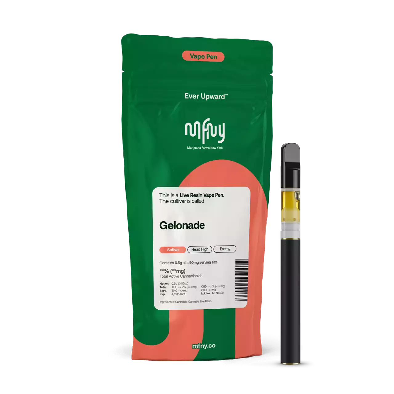 The MFNY live resin disposable vape has a terpene-rich profile of our single-source, in-house produced Gelonade real live resin. We start with fresh-frozen flower buds, then use the hydrocarbon extraction method (plus years of experience and scientific precision) to deliver the purest plant extract. An extract that showcases the cultivar's naturally-produced, full-spectrum cannabinoids and remarkable natural terpenes. The celebrity parentage and unmistakable bold flavor of Gelonade is sweet citrus, pine, and vanilla flavors. This cultivar is known to promote feeling energetic and uplifted with long-lasting, invigorating cerebral effects that spread to your whole body. No distillates, added flavors, or alterations.Comes in a sleek rechargeable Active EZ Click Glass All-In-One vape pen, preconfigured to enjoy at the perfect temperature. Vape cartridge contains concentrated live resin oil that is heated by a battery and vaporized for inhalation. These products are very potent and are designed to be consumed in 2-3 second puffs. Exclusively single-sourced at MFNY in the Hudson Valley. Together, we can take NY and all New Yorkers Ever UpwardTM